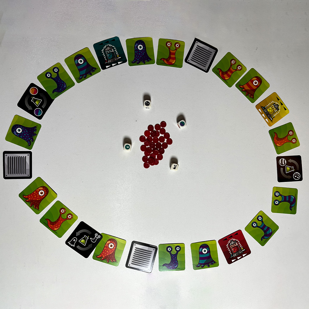 یه آزمایشگاه مخوف و ترسناک در یه مکان نامعلوم و مخفی برای آزمایش روی جانوارن تک سلولی به نام آمیب!!! آمیب ها موجوداتی که بی شباهت به بیگانگان فضایی نیستند! و در آزمایشگاهی به نامpanic lab مورد بررسی و اکتشاف قرار گرفتند. البته این موجودات فوق العاده جذاب و زیبا به هیچ وجه خطرناک نیستند و آزاری برای انسان ها ندارند، البته این موضوعی هست که هنوز به طور کامل اثبات نشده و دانشمندان در پنیک لب برای اثبات این موضوع تلاش میکنند! اما شاید بپرسید مشکل کار کجاست و این تحقیقات به ما چه ارتباطی میتونه داشته باشه؟؟! نکته همینجاست!!! تعدادی از این آمیب ها از آزمایشگاه فرار کردند، البته خوشبختانه هنوز در همین مرکز هستند و از محیط کلی آزمایشگاه بیرون نرفتند. دانشمندان از شما برای پیدا کردن اونها درخواست کمک کردند و شما باید هر چه سریعتر اونها رو به آزمایشگاه برگردونید! آمیب ها علاقه خاصی به جاهای تاریک و کوچک دارند و شما از این محیط ها غافل نشید، بخصوص کانال های کولر!! از یک ویژگی منحصر به فرد، آمیب ها بهره میبرند و اون تغییر شکل، رنگ و طرح هست!! درست شنیدید، آمیب ها میتونن به رنگ ها، شکل ها و طرح های مختلفی تغییر کنند و این میتونه کار شما رو برای پیدا کردنشون مشکل کنه! پس عجله کنید، چون وقت زیادی ندارید و سعی کنید آمیب های بیشتری رو در سریع ترین زمان ممکن در PANIC LAB پیدا کنید!!! پنیک لب یه بازی کارتی هست که علیرغم سادگی و کم بودن اجزاء اون خیلی جذاب و هیجانی هست. مکانیک این بازی پرتاب تاس، الگو شناسی و حافظه است و با ترکیب این مکانیک ها باعث ایجاد بازی شاد و خلاقی شده. آموزش و یادگیری قوانین این بازی خیلی کمتر و ساده تر از اون چیزی هست که شما فکر میکنید و به همین خاطر برای اکثر سنین، حتی کودکان بین 8 تا 10 سال قابل بازی است. بازی پنیک لب، کامپوننتس یا محتویات خیلی کمی داره و فقط از 25 کارت و 4 تاس تشکیل شده و در عین این سادگی بدلیل خلاقیت بالایی که داره قطعا باعث علاقه شما و دیگر بازیکنان میشه. تصاویر کشیده شده بر روی کارت های بازی فوق العاده جذاب و فان هستند و تصویرگر بازی با استفاده از رنگ های شاد و طرح های فان و زیبایی که از آمیب ها کشیده، باعث شده بازیکنان در هنگام بازی حس خوب و شادی رو تجربه کنن. شما در این بازی باید با توجه به علائم روی تاس های بازی که به صورت تصادفی نمایش داده میشوند، زودتر از سایر بازیکنان آمیب مورد نظر رو پیدا کنید و سرعت العمل و هماهنگی بین مغز و دستتون رو بسنجید. بازی پنیک لب کمک شایانی به ارتباط و هماهنگی دو نیمکره مغزتون میکنه و همچنین ارتباط مغز با اندام های حرکتی دست و همچنین چشمان شما میشه و شما با انجام بازی در دفعات زیاد میتونید این مهارت ها رو ارتقا ببخشید. از خصوصیات مثبت این بازی میشه به امکان بازی کردن با تعداد نفرات بالا و سنین مختلف اشاره کرد، همچنین به دلیل ساده بودن قوانین بازی، آموزش بازی خیلی سریع انجام میگیره و زمان کوتاه بازی میتونه از خسته شدن شما و سایر بازیکنان جلوگیری کنه. از مزیت های دیگه بازی پنیک لب امکان بازی به 2 روش ساده و پیشرفته است، شما میتونید ( با یا بدون ) کارت های کانال کولر و دگردیسی بازی رو انجام بدید و این موضوع بسته به سن بازیکنان و همچنین مهارت های اونها، برای بهتر شدن بازی کمک شایانی میکنه.